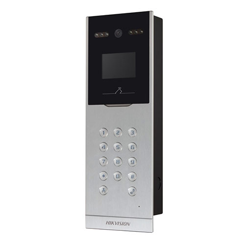 Deze Hikvision buitenpost is uitermate geschikt voor toepassing bij een bedrijfsverzamelgebouw of appartementencomplex. De buitenpost is helemaal vlak en beschikt over drukknoppen. Via het 3.5" LCD scherm kunnen bewoners/gebruikers worden opgezocht en gekozen. Alle buitenposten beschikken over een groothoek 1.3MP camera voorzien van infrarood licht en een MIFARE kaartlezer waarop MIFARE tags ingeleerd kunnen worden. Resolutie is 1280x720.